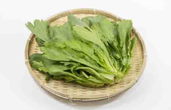 基本的には通年流通していますが、11月~翌年2月頃が菊菜の旬になります。葉の切れ込み形によって、主に大葉、中葉、小葉と品種が大別されるが、野菜としての栽培は葉が厚く味が良い中葉が主流であり、香りは強く鍋料理には欠かせません。